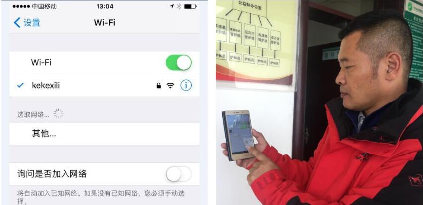 可可西里野生动植物保护协会陈会长在保护站测试卫星WIFI